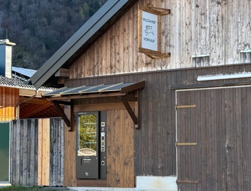 Die Forstverwaltung Maximilian Mayr Melnhof Salzburg freut sich, dass ab sofort ein moderner Verkaufsautomat für die Wildfleischprodukte aus der eigenen Wildbretkammer, am Standort Wirtschaftsgebäude - direkt gegenüber der Einfahrt zum Gutshof Glanegg - zur Verfügung steht.